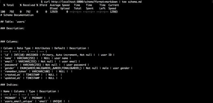 A MySQL Schema Documentation Generator for Laravel.