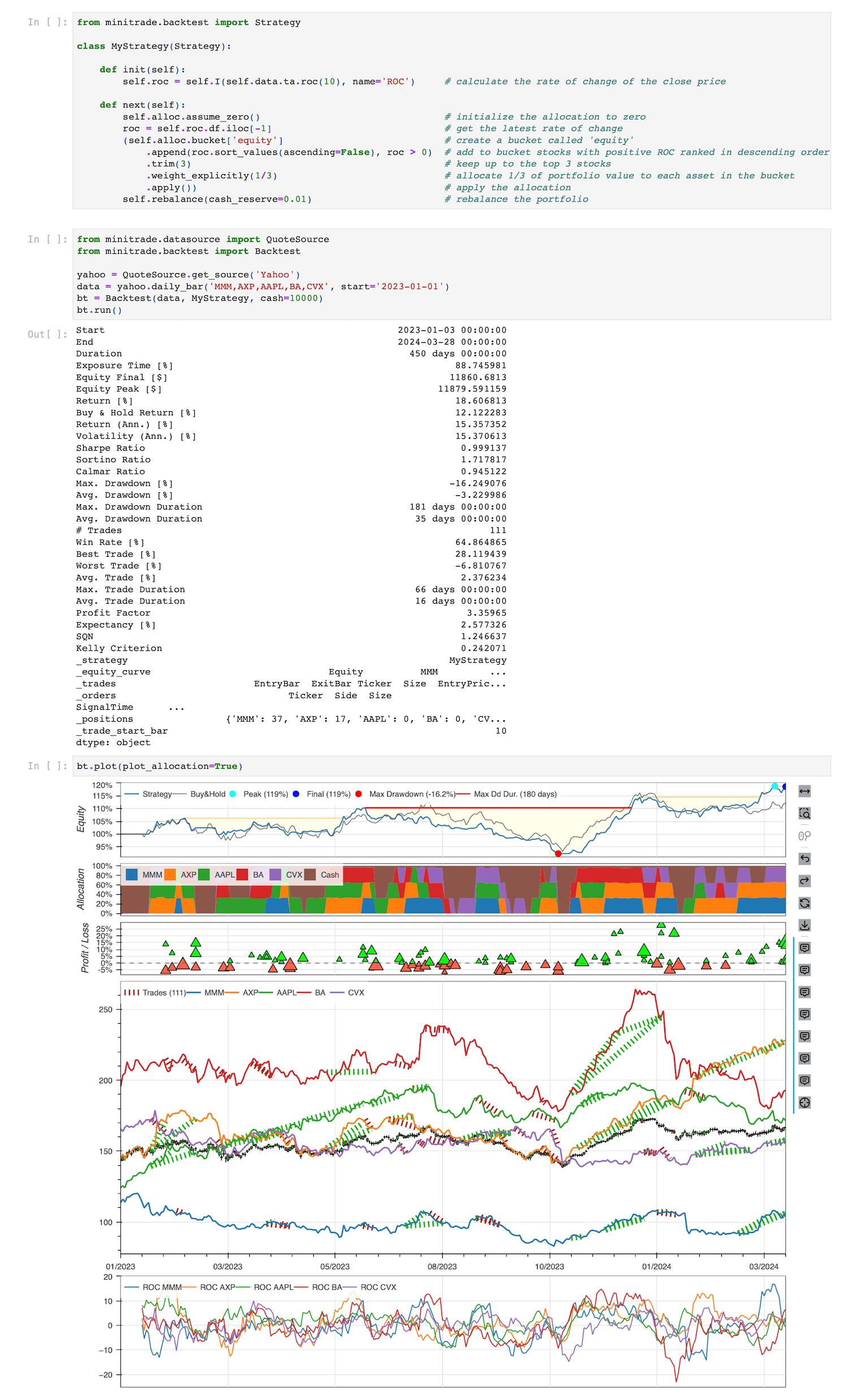 Minitrade is a personal trading system that combines strategy backtesting and automated order execution. Leveraging the power of Backtesting.py, Minitrade offers an array of enhanced features: