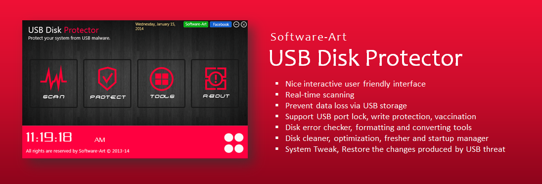 USB Disk Protector a WPF C# based full featured open source USB Antivirus solution for Windows Platform. USB storage is a common source of infection with potentially dangerous content, but a lot of antivirus software can not effectively detect the malicious programs from USB drives. USB Disk Protector provides the best protection against any threats when using USB drives. More details and feature on https://iamhasib.wordpress.com/portfolio/usb-disk-protector/