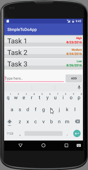 SimpleToDoApp is an android app that allows building a todo list and basic todo items management functionality including adding new items, editing and deleting an existing item.