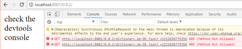 This example request a static JSON file 3 times. In this case 2 of them returns with 405
