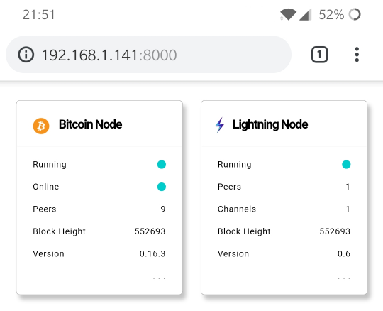 Both nodes (Bitcoin and Lightning) will likely show as not running. This is because we have not set up the authentication details yet.